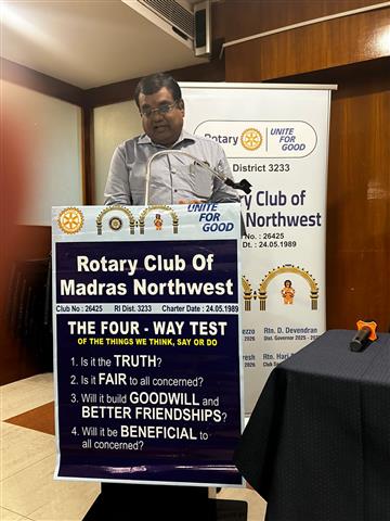 Regular speaker meeting for this month of October 25 Rtn VR Lakshma. . .