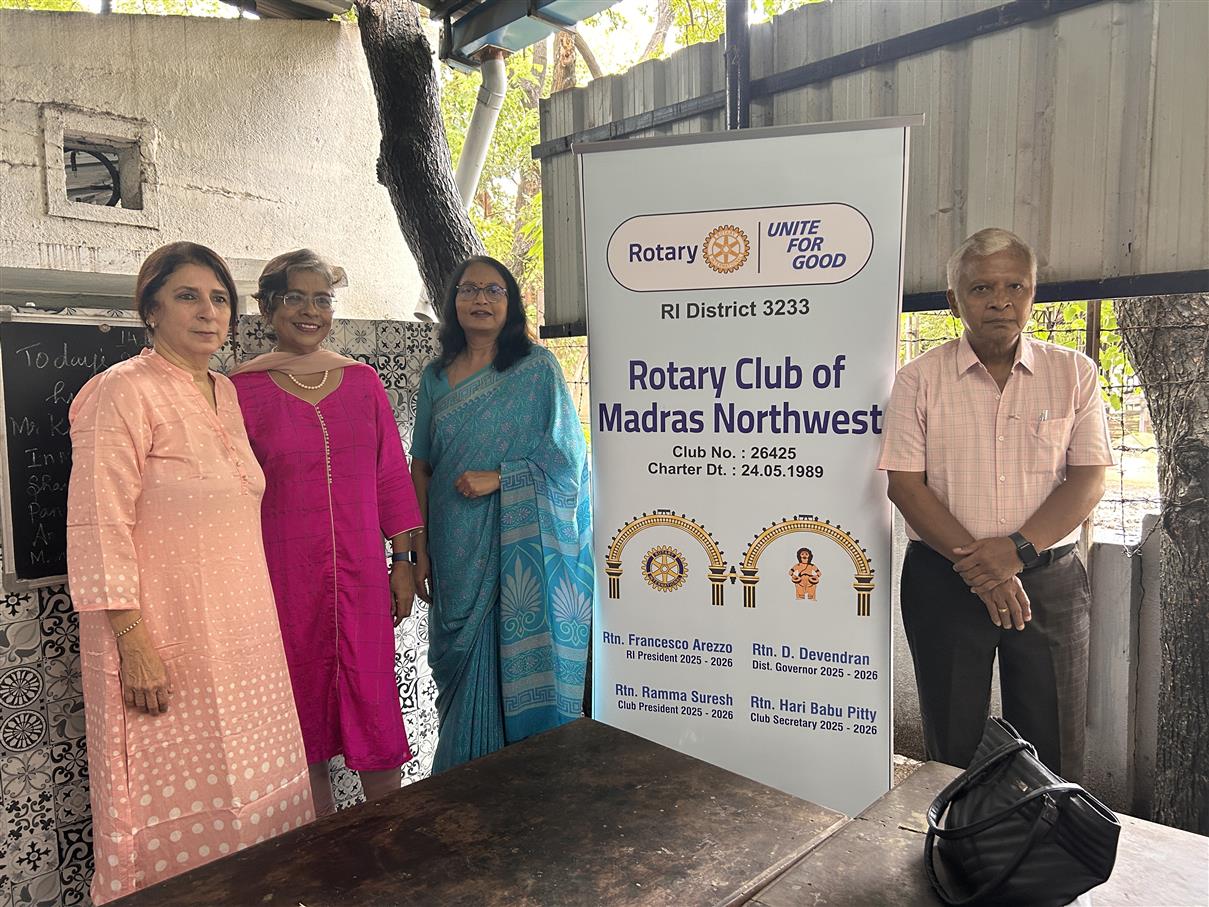 Rtn KS Jayaraman and Ann Brindha Jayarman distribute sarees dhotis . . .